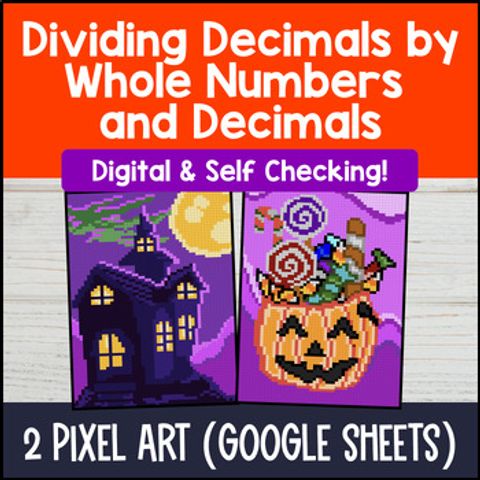 Buy on TPT →Help your 5th and 6th graders master dividing decimals by whole numbers and decimals with this engaging fall-themed digital pixel art activity. Designed for Google Sheets, this interactive resource offers 24 self-checking problems aligned to 5.NBT.B.7 and 6.NS.B.3. Students get instant feedback as they reveal mystery autumn images, making review, homework, or sub plans fun and easy to manage. Perfect for independent practice or spiral review in your middle school math classroom.