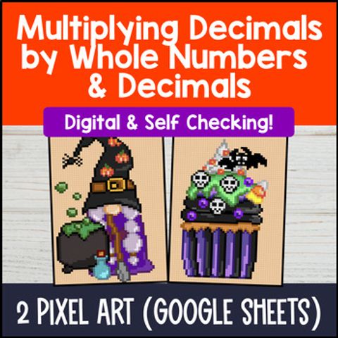 Buy on TPT →This fall-themed digital pixel art uses Google Sheets to help 5th and 6th graders practice multiplying decimals by whole numbers and decimals, aligned with CCSS 5.NBT.B.7 and 6.NS.B.3. It includes two self-checking Google Sheets with 24 questions total—perfect for independent practice, review, or sub plans. Students get instant feedback as correct answers unlock a fun mystery picture, making math engaging while you save time on grading and differentiation.