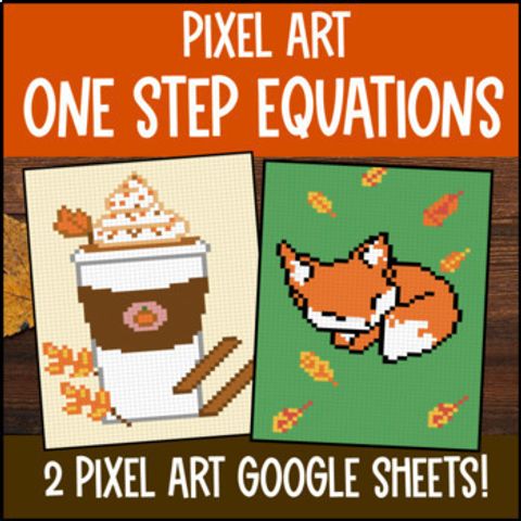 Buy on TPT →I created this One-Step Equations Pixel Art resource to make practicing math fun for your middle school students! It features 24 questions across two Google Sheets, focusing on positive integers and decimals while aligning with CCSS 6.EE.B.7. Your students will tackle addition, subtraction, multiplication, and division equations, all while uncovering autumn-themed pixel art—perfect for fall, Halloween, or Thanksgiving. This engaging online resource is ideal for independent practice or sub plans, ensuring your students stay motivated and excited about learning equations.