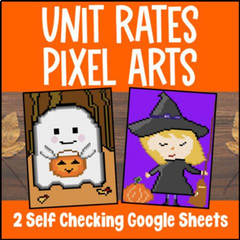 Buy on TPT →This Unit Rates and Unit Pricing Pixel Art resource makes mastering key math concepts a breeze for your sixth and seventh graders! With two Google Sheets packed with 24 engaging questions, your students will sharpen their skills in solving unit rate and pricing problems—Level 1 focuses on whole numbers, while Level 2 dives into decimals. The fun autumn-themed pixel art adds a seasonal twist that’s perfect for fall, Halloween, and Thanksgiving. Aligned with CCSS 6.RP.A.3.b and CCSS 7.RP.A.1, it’s versatile enough for sub plans, review lessons, or independent practice!
